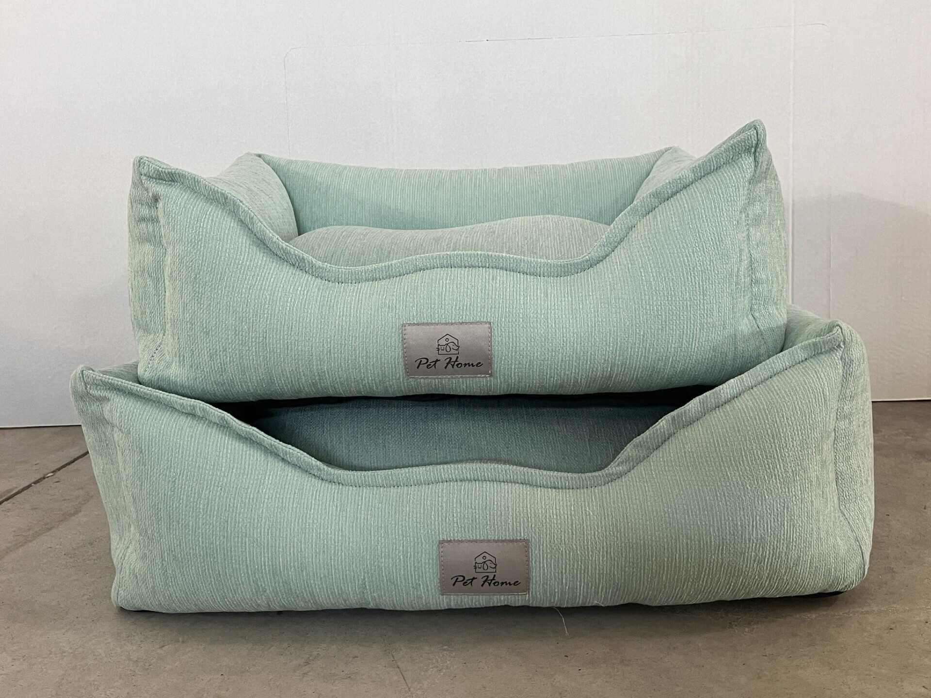 Elegante lettino in cotone in color tiffany. Completamente sfoderabile, fondo in tessuto antiscivolo.